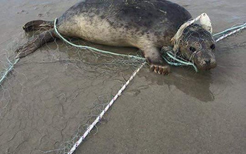 Visnetten blijven gevaarlijk voor zeehonden: die denken een lekker visje te kunnen verschalken en voordat ze het weten zitten ze verstrikt in het fijnmazige net. Door de bouw van hun voorvinpoten kunnen ze het net niet van hun kop aftrekken. Hun eerste reactie is dan ook zo hard mogelijk trekken, waardoor het net steeds dieper in hun vel snijdt en diepe wonden maakt. Wat is het dan geweldig dat er mensen zijn die met alle mogelijke middelen dergelijke nettenslachtoffers proberen te redden.