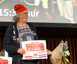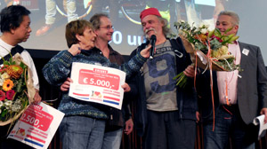“Dit is een droom die werkelijkheid wordt”, zei een verbouwereerde Hessel Wiegman, toen hij uit handen van de winnaar van vorig jaar, Toon Lesterade, de oorkonde, een grote bos bloemen en een cheque van € 5000,= in ontvangst mocht nemen. En toen het juryrapport werd voorgelezen, waren alle duizend aanwezige dierenvrienden het er mee eens, dat deze prijs hem ten volle toekwam. En wij feliciteren Hessel dan ook van harte met deze terechte onderscheiding.