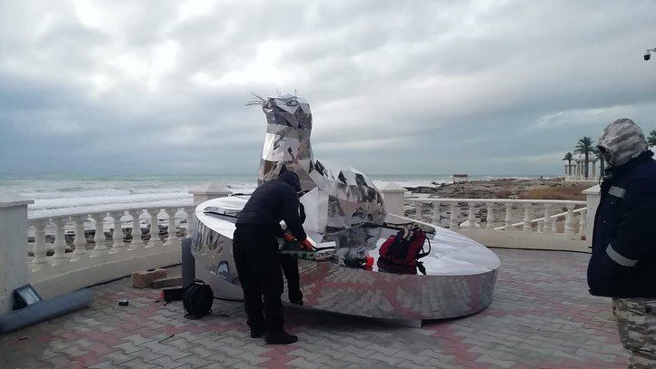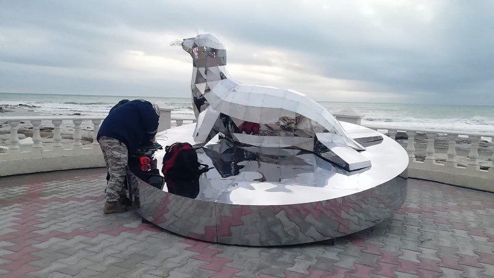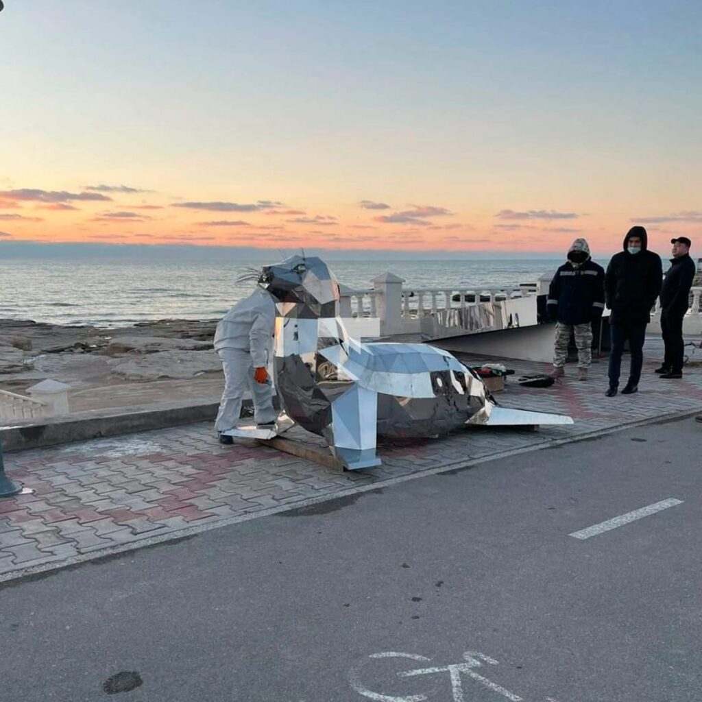 “De zeehond is een van de symbolen van Aktau, een endemisch dier uit de Kaspische Zee. De auteurs waren, net als het hele land, geschokt door het nieuws over de wrede behandeling van deze prachtige dieren die we de afgelopen jaren hebben waargenomen. Dit kleine architecturale vorm is een protest tegen de zielloze houding ten opzichte van het milieu om ons heen, die zo kwetsbaar en weerloos is”, aldus het stadsbestuur.