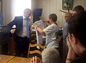 Zeehonden (weliswaar van een Nederlandse foto, maar toch) waren prominent afgebeeld. Alle hoofdrolspelers die meedoen in het beheer van de 536 km. lange kust van de Kaspische zee in Dagestan waren daarbij aanwezig: medewerkers van de Universiteit, van Lukoil, en ook het elektriciteitsbedrijf, de waterpolitie enz. Maar ook de visserman die de eerste zeehond uit zijn net had gered.