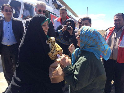 Mevrouw Masoumeh Ebtekar, Vicepresident van Iran en directeur van de DOE (Department Of Environment), arriveerde per helikopter en kreeg van Lenie symbolisch een pluche luipaard aangeboden.